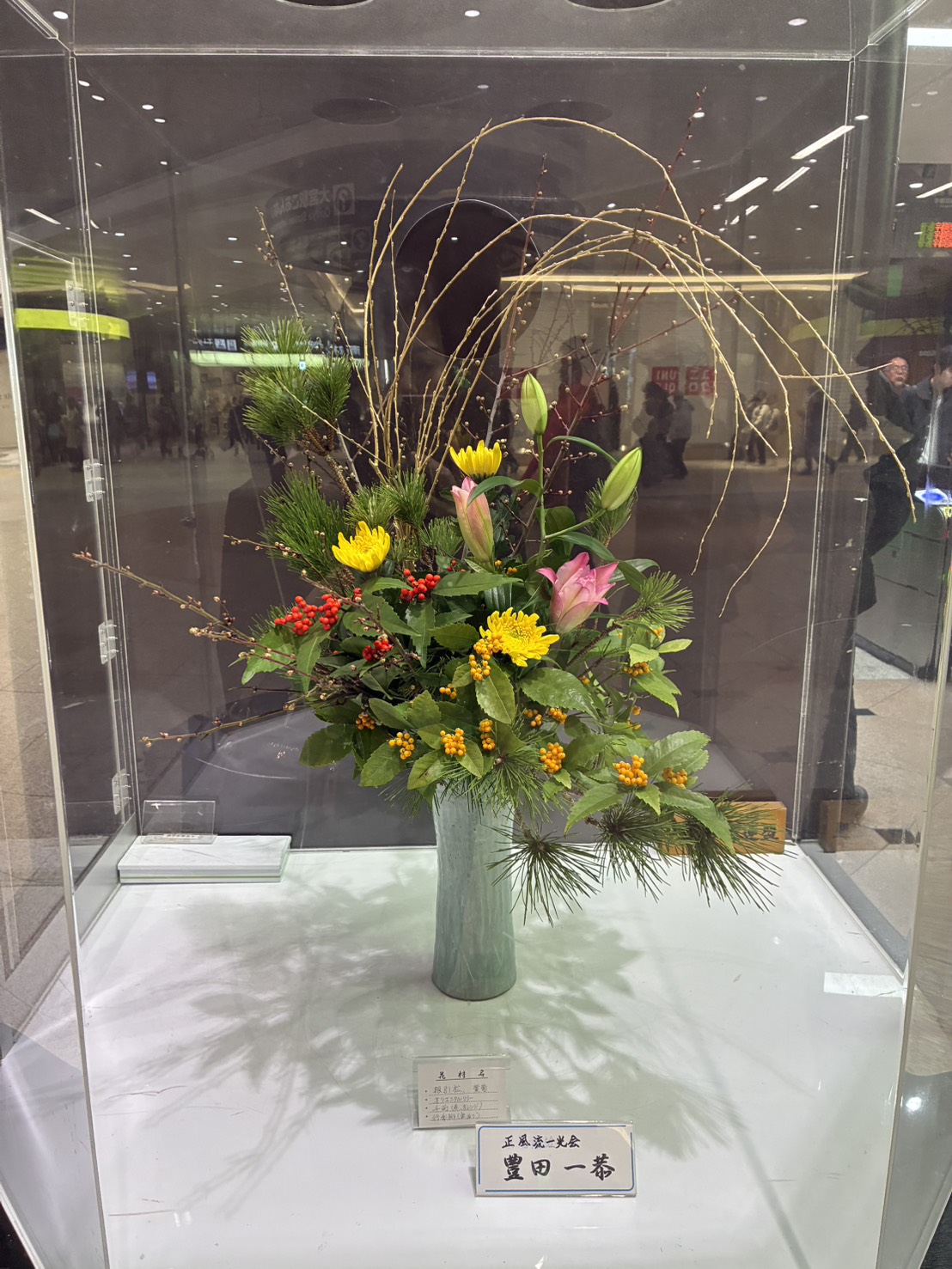 正風流一光会・豊田一恭のいけばなが、JR大宮駅生け花展示スペースに展示中です。